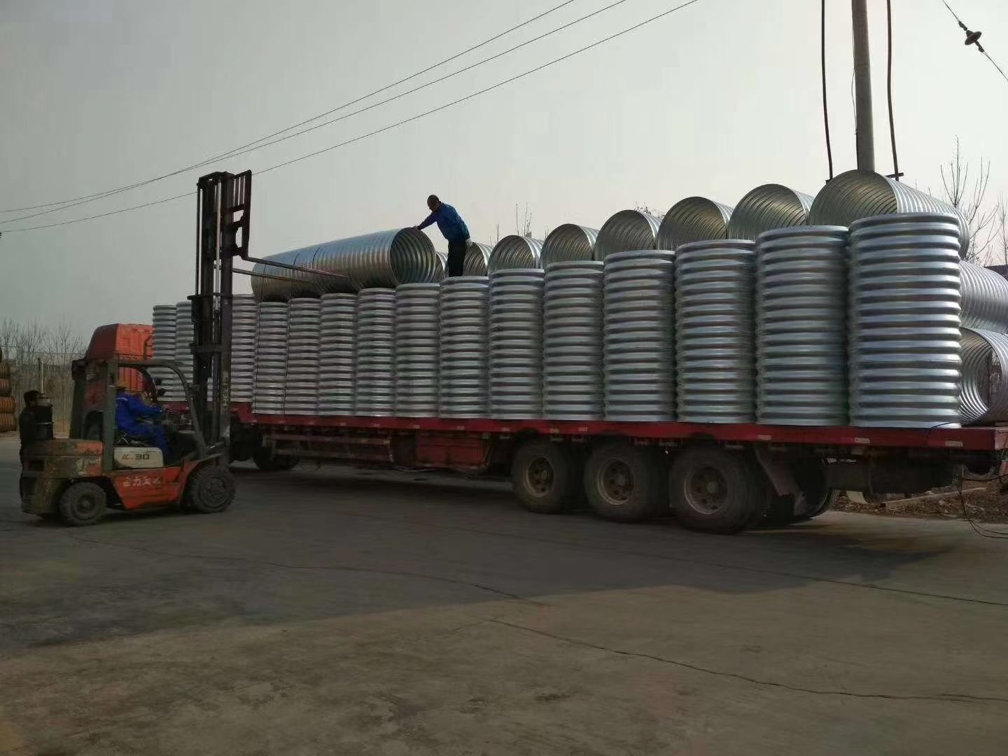 ② 運輸方便,波紋管涵的重量只有同口徑水泥管的1/10到1/5,即使在窄的場所沒有運輸設備,人工也可運輸。