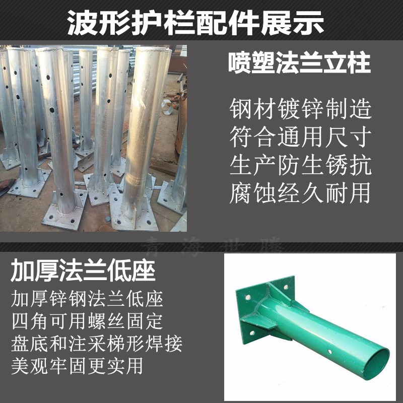 常見規格:二波波形護欄板:4320*310*85*厚度 二波護欄板立柱:Φ114/Φ140 mm×4.0/4.5mm×高度